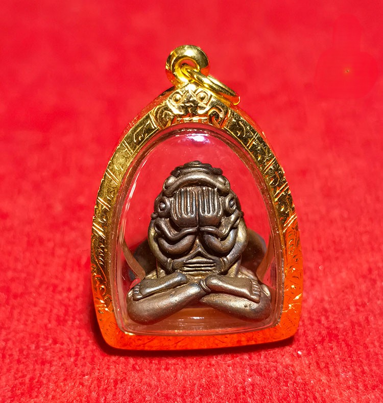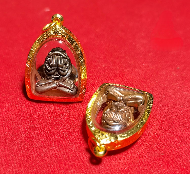 龙婆撒空掩面佛(必打),巴利文炎永模,เนื้อชนวน禅銮材质,使用多种古老法器金属,以往经过诵经后做佛牌剩下的老材料混合制作法相,佛历2553年龙婆撒空经过90天诵经加持开光。 掩面佛分为多种材质,最贵模分别是金、银、禅銮三种材质为贵模,大小分为大模及小模,总加持数量因材质不同数量不一,贵模数量较少。每一尊都有独立编号,背面凹陷处打入庙印,避各种小人,防小人背后使坏、108种灾祸避险、招财守财防漏财、防不好邪气入侵。 这一使用大量寺庙法器金属混合金银制作法相所以颜色各有不同,颜色偏红泛金颜色是金含量较高